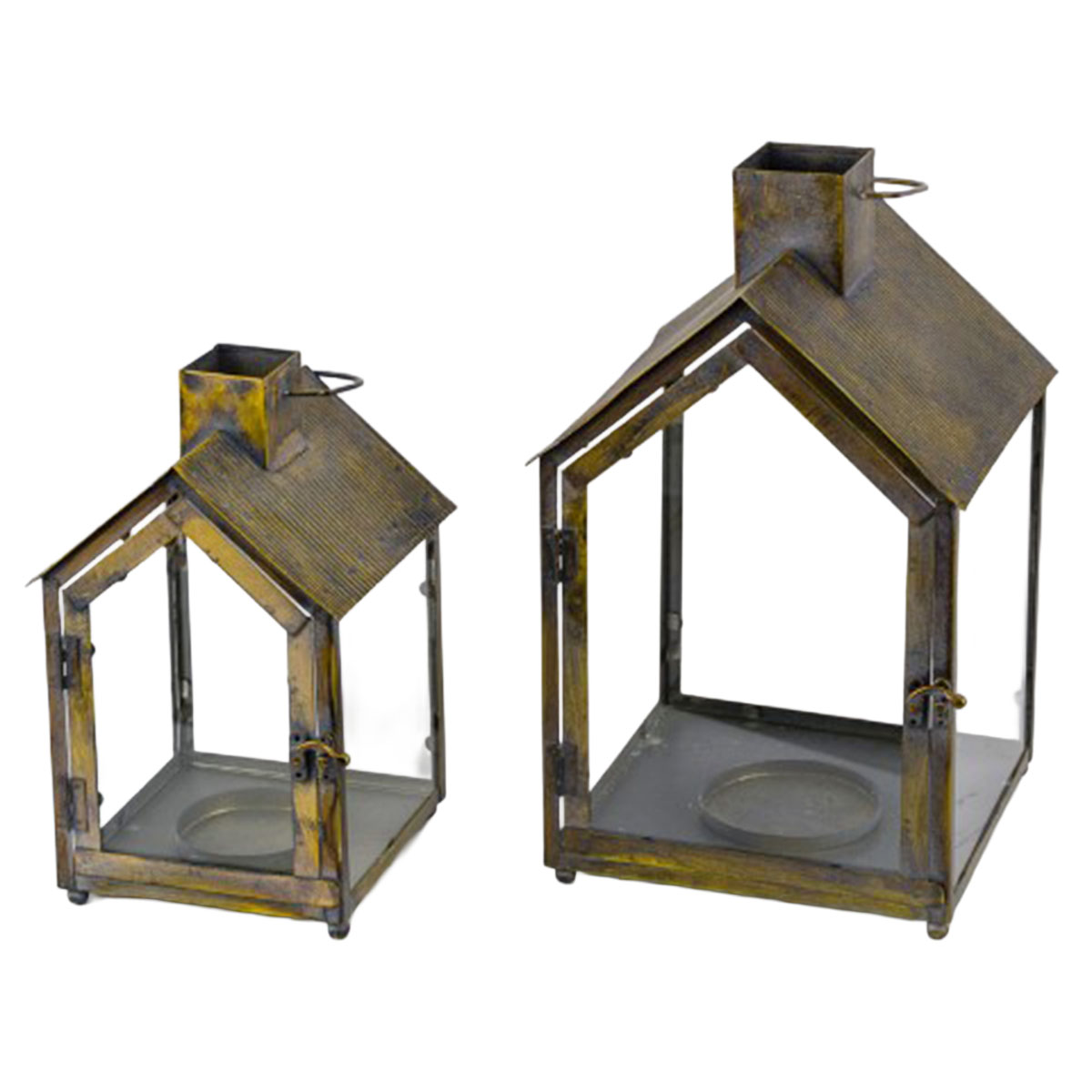 Produktinformationen "Windlicht Haus used look, Metallhaus gold antik finnish, 39cm"