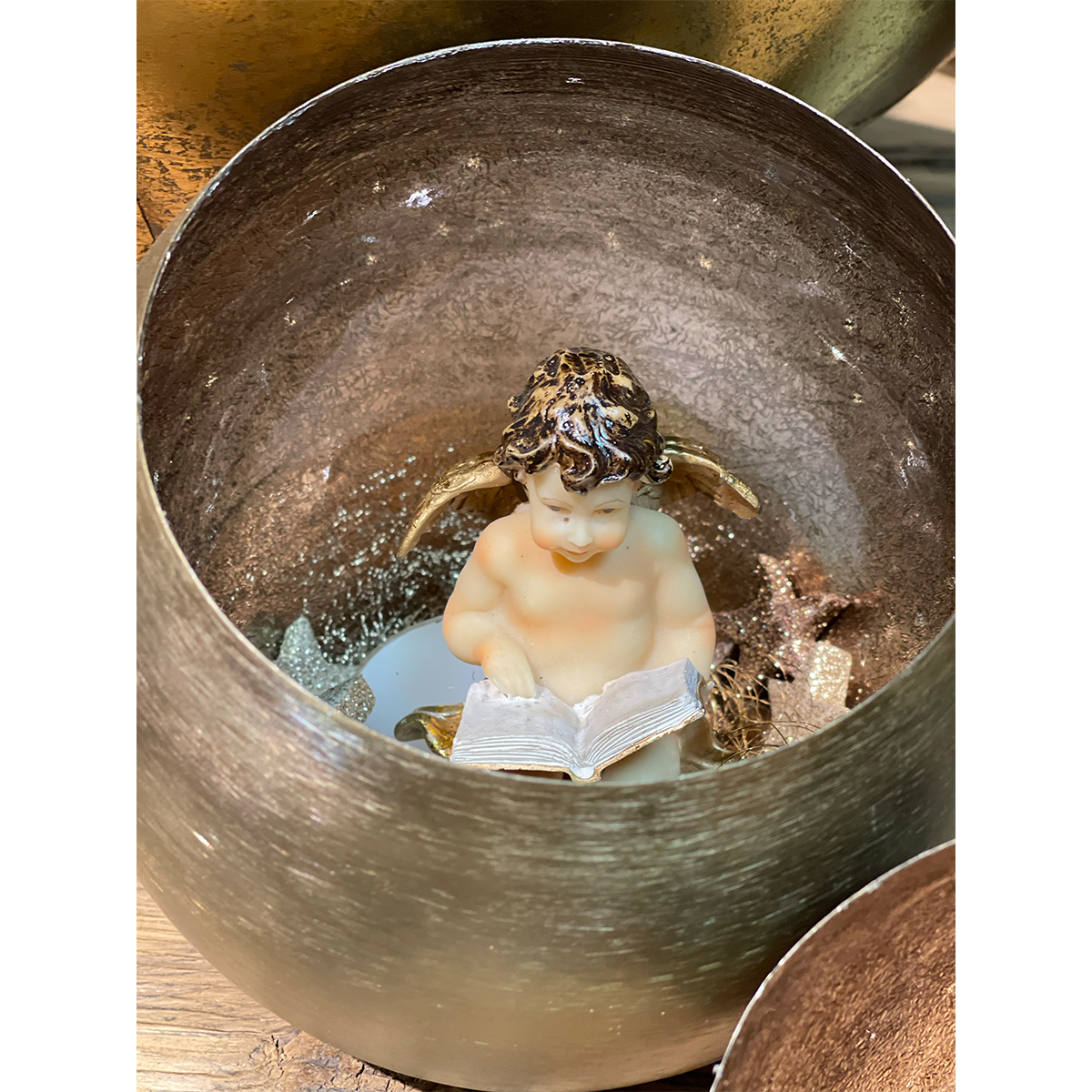Windlicht Kugel Aurum Antiklook, Windlicht Schrägstellung, gold antik finish, Ø20cm, Metall