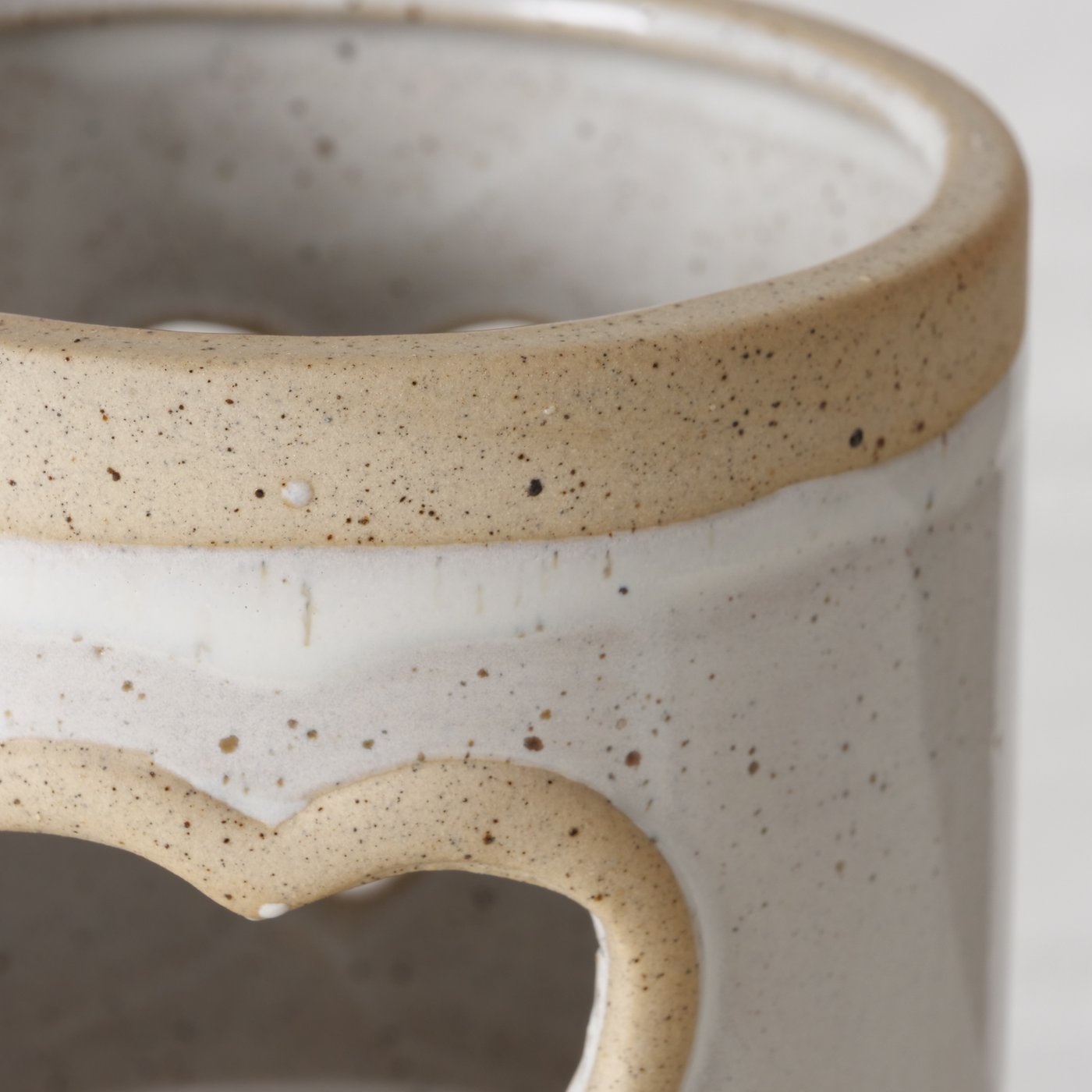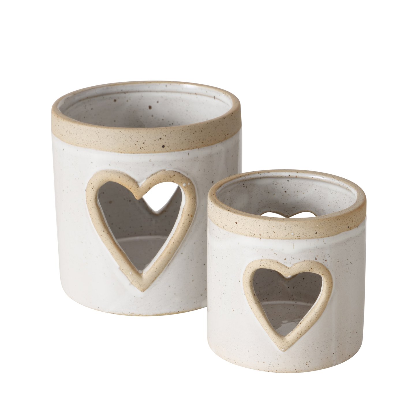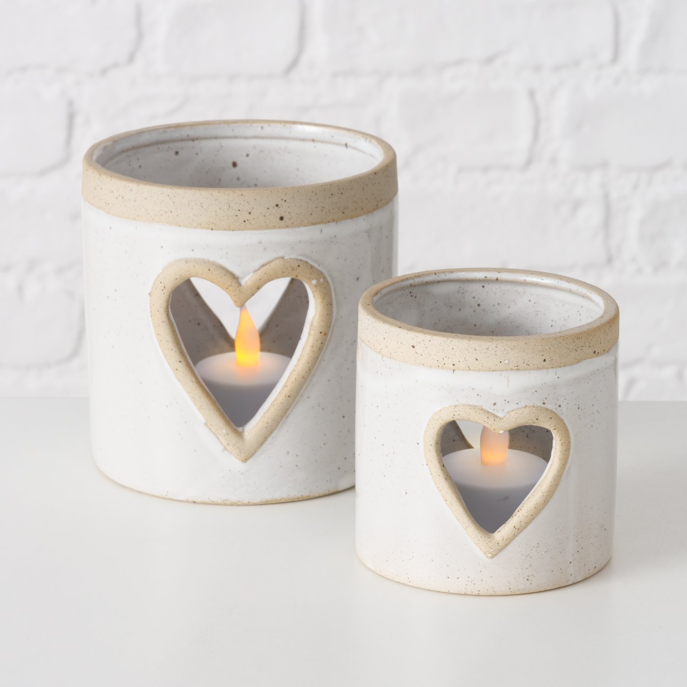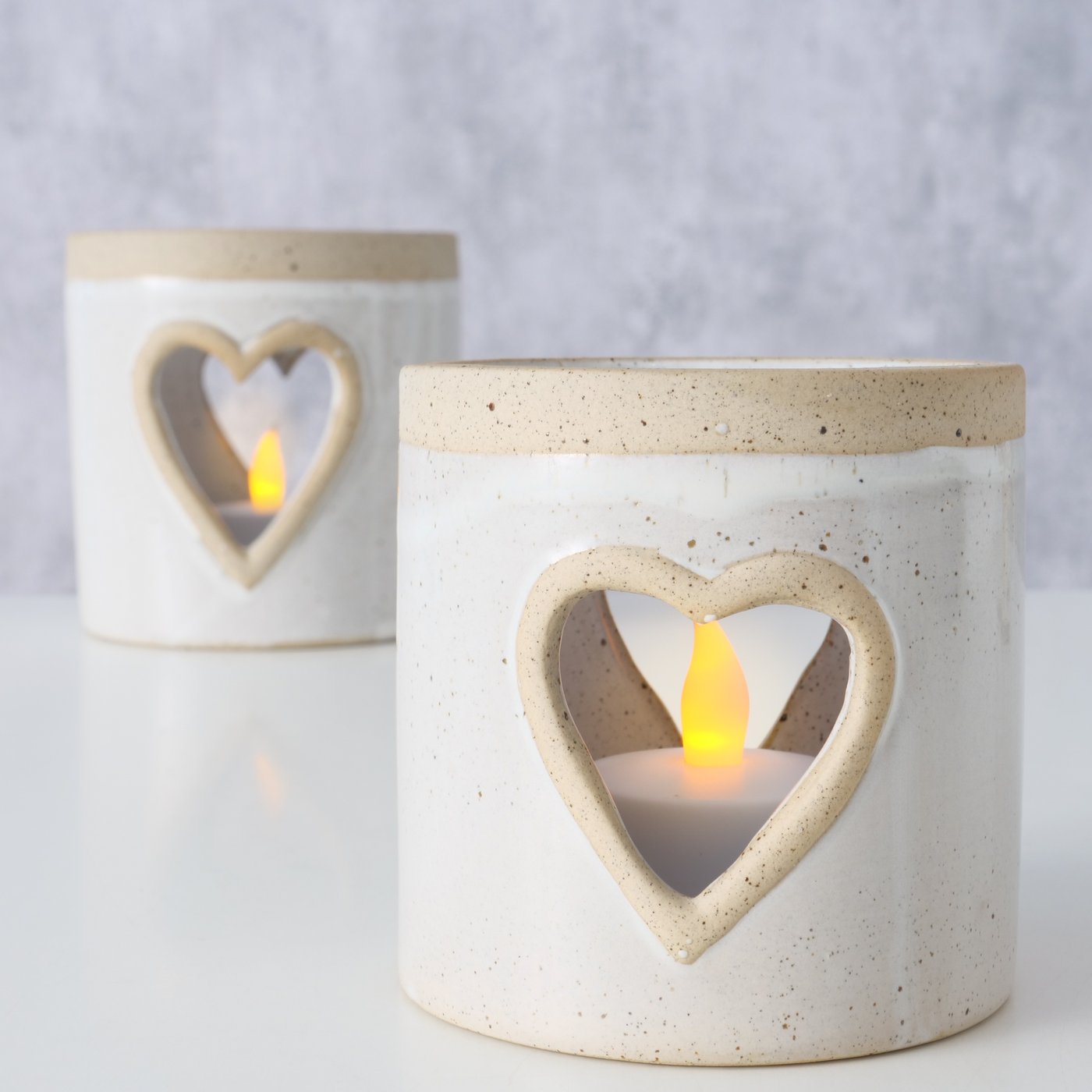 Windlicht Noomi mit Herz, Windlicht mit Farbrand, Steingut, naturtöne, 8cm, Boltze Home Collections