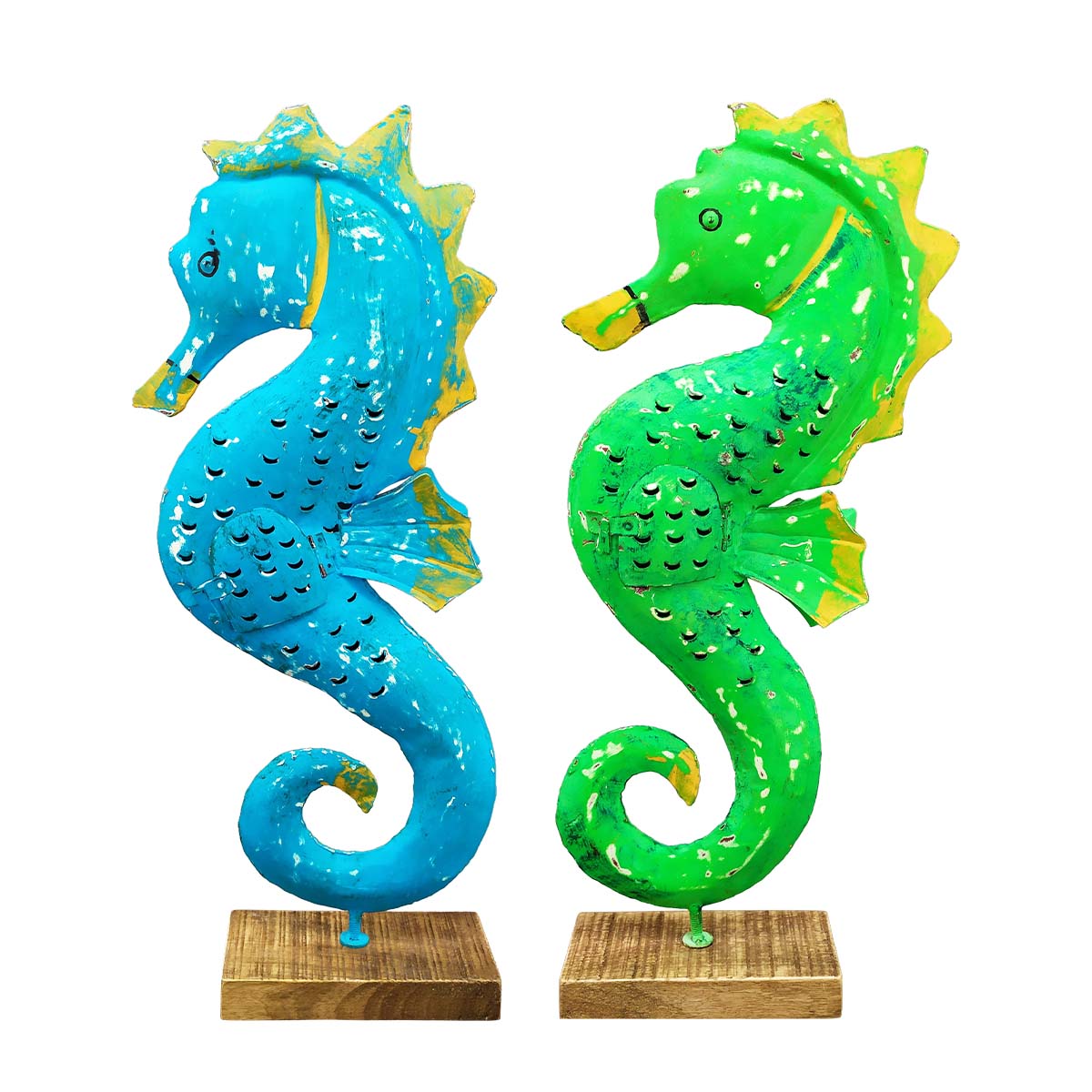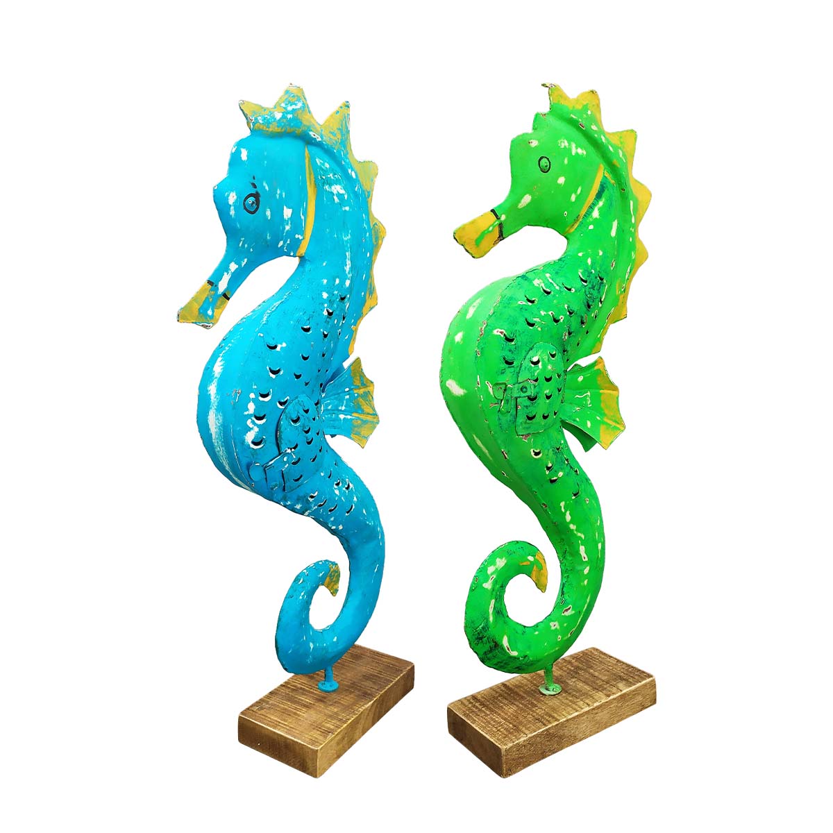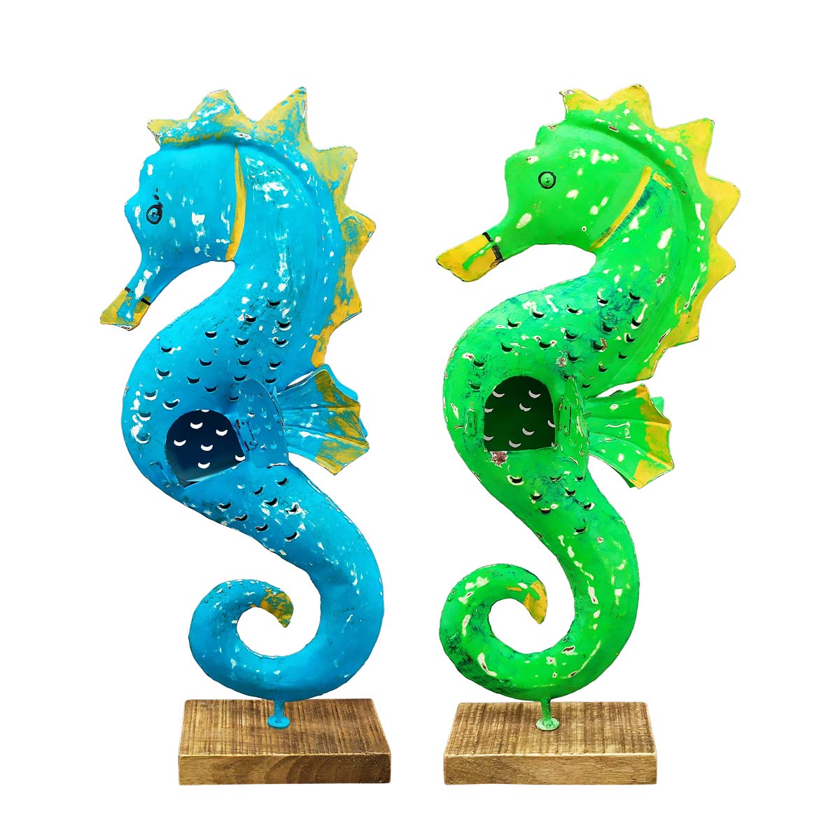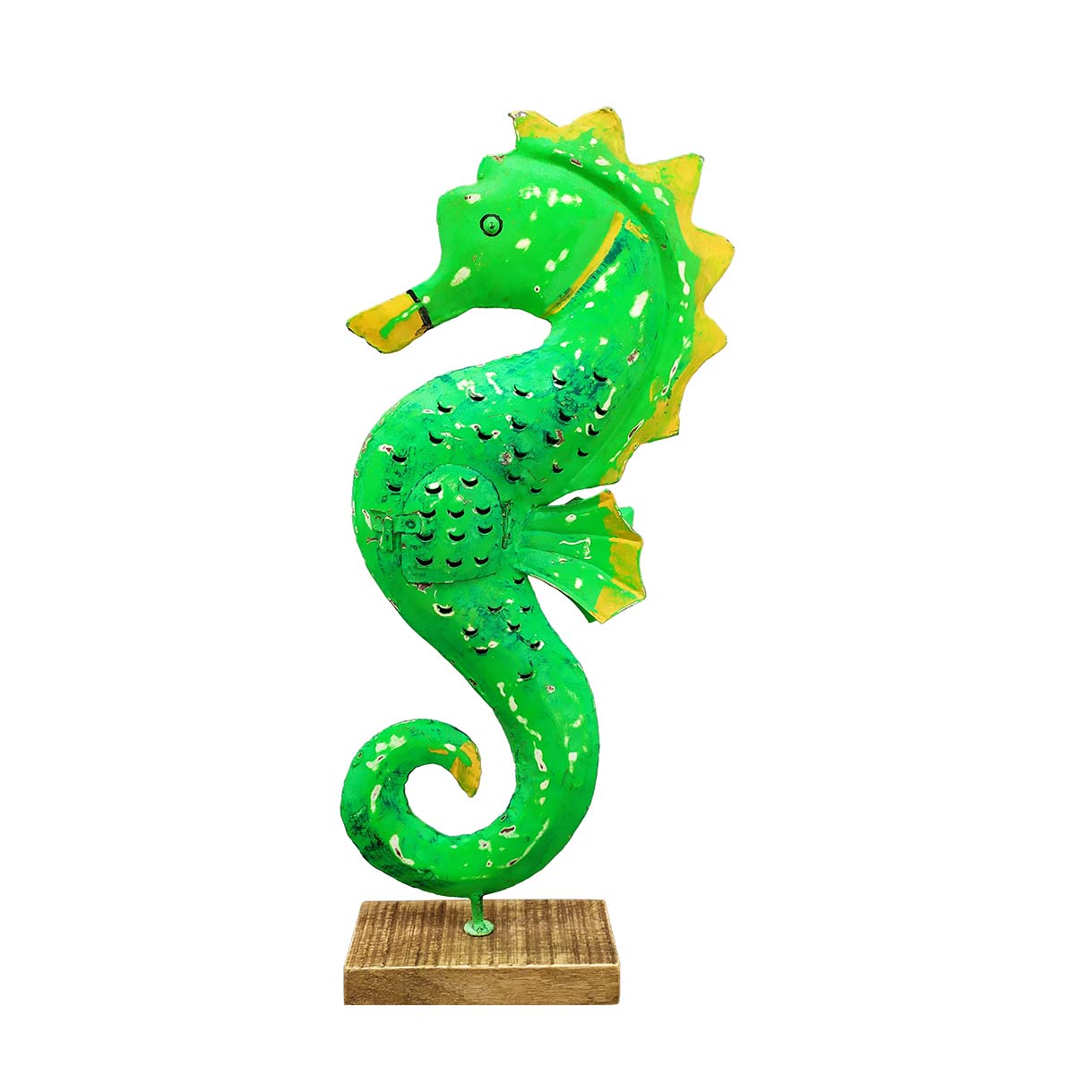 Windlicht Seepferdchen grün, Seepferdchen mit kleinem Türchen, 65cm, Metall