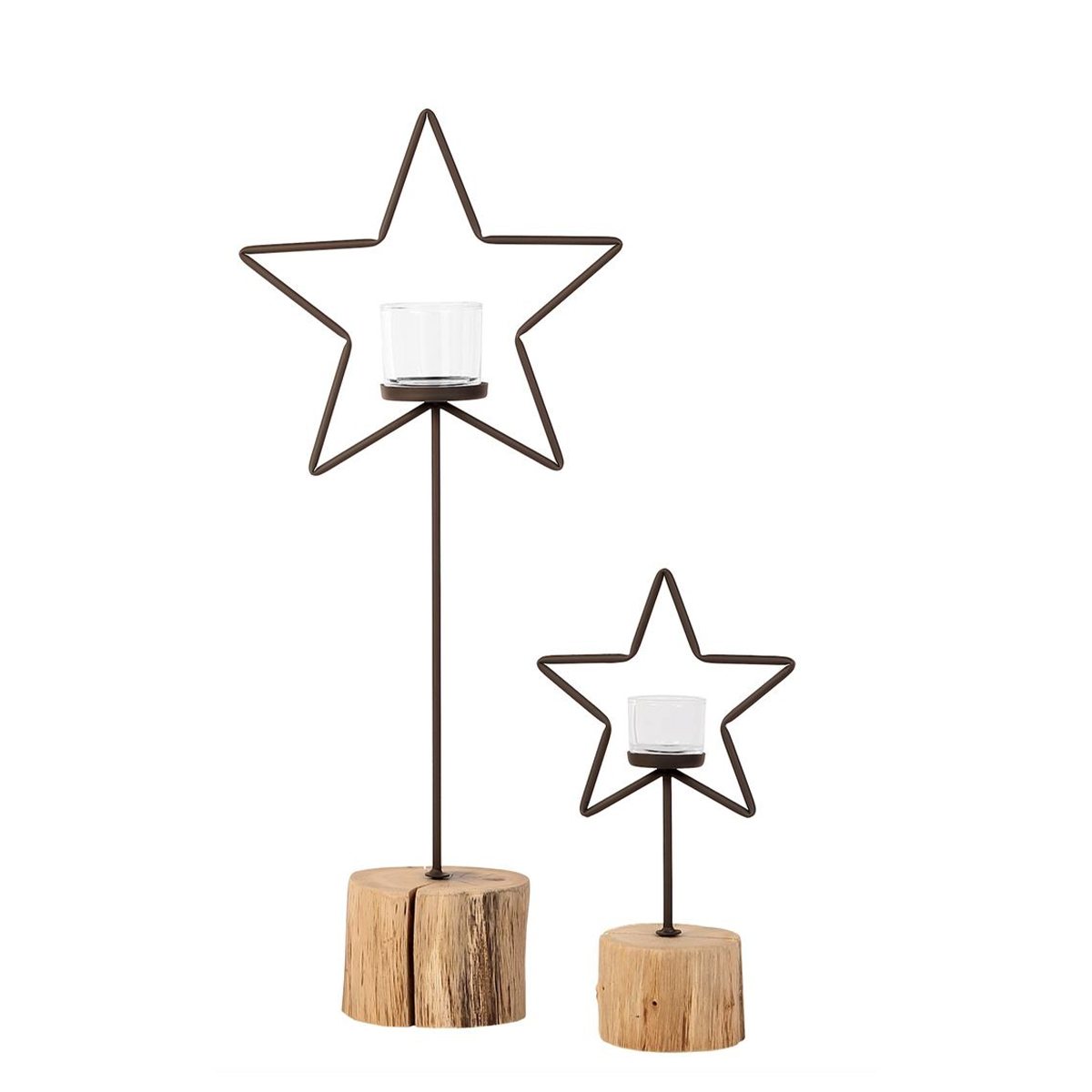 Windlicht Weihnachtsstern, Eisenstern auf rustikalem Holzfuß natur, 60cm, WMG Grünberger