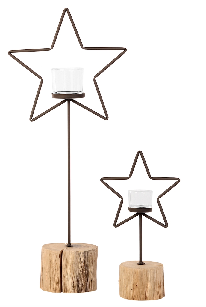 Windlicht Weihnachtsstern, Eisenstern auf rustikalem Holzfuß natur, 40cm, WMG Grünberger