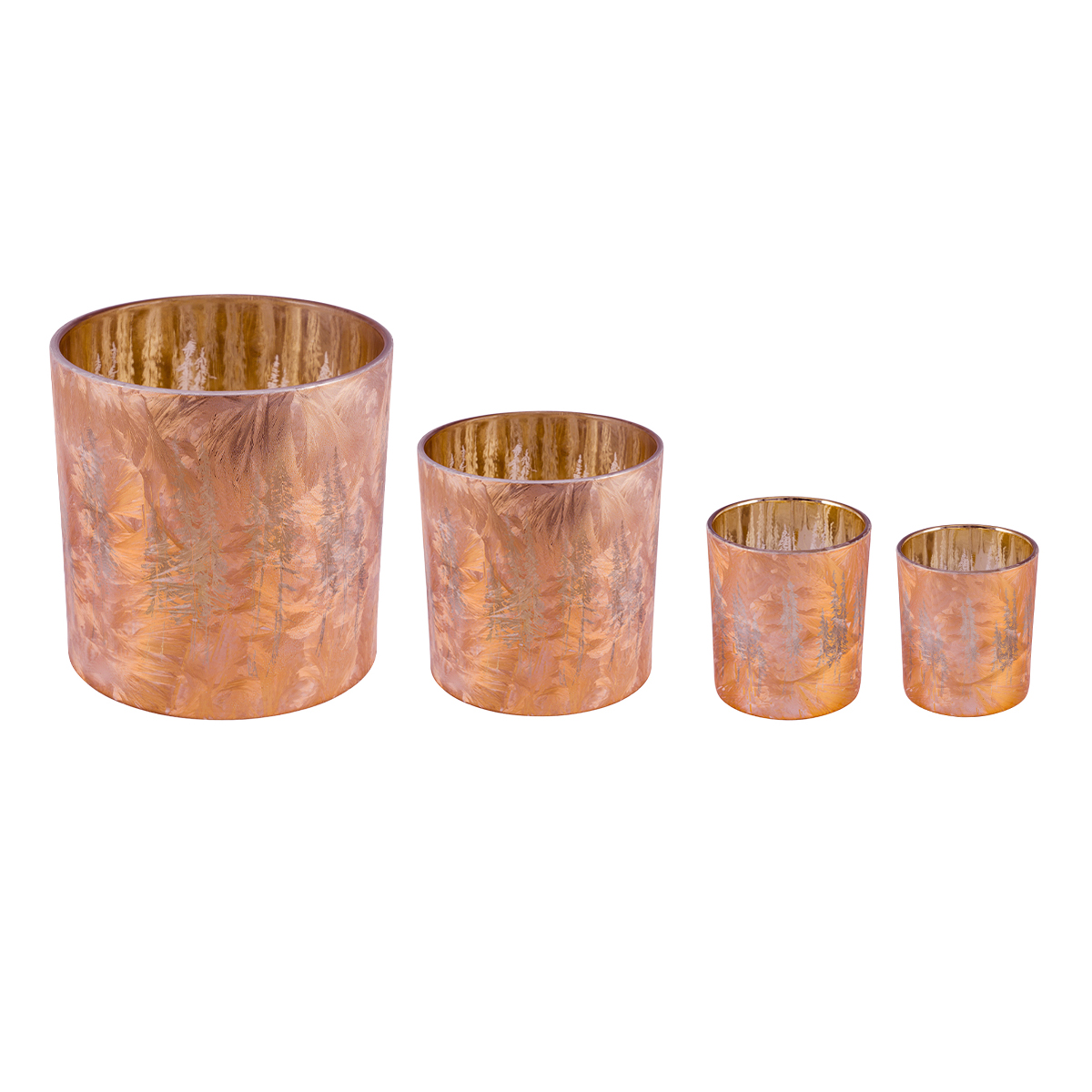 Windlicht Winterwald kupfer, Glaswindlicht mit Tannenbaum-Motiv, durchscheinend, 20cm