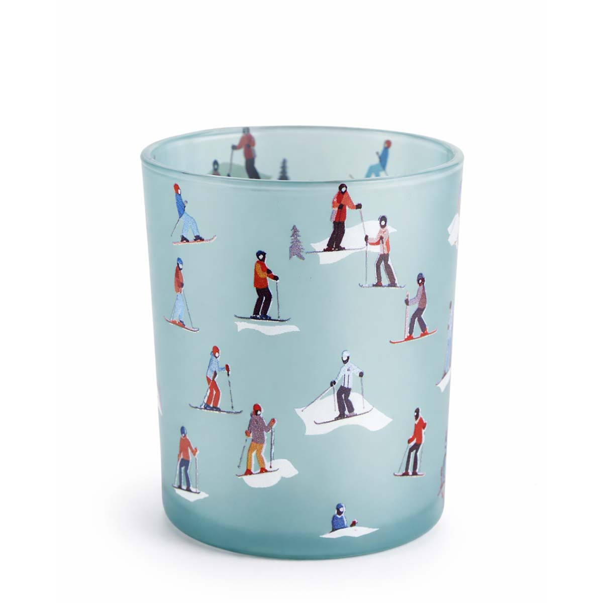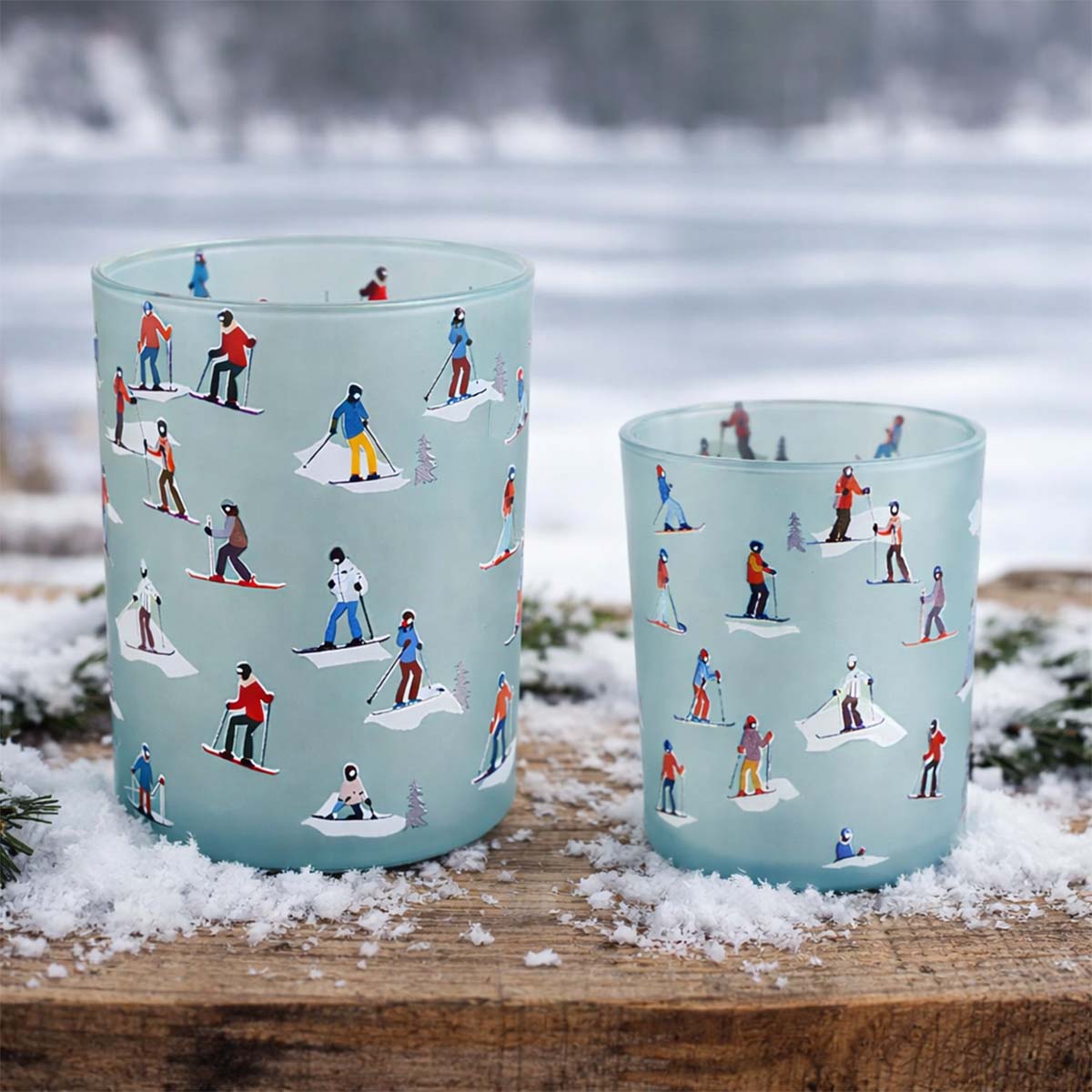 Das satinierte Glas sorgt für ein angenehm weiches, stimmungsvolles Licht. Mit einem Teelicht oder einer kleinen Kerze entsteht eine warme Atmosphäre, die perfekt zu einer winterlichen Tischdeko, einer Hüttendekoration oder einem gemütlichen Abend im Wohnzimmer passt. Besonders schön auch als kleines Geschenk für Skifans oder als Erinnerung an die schönste Zeit im Jahr in den Bergen.