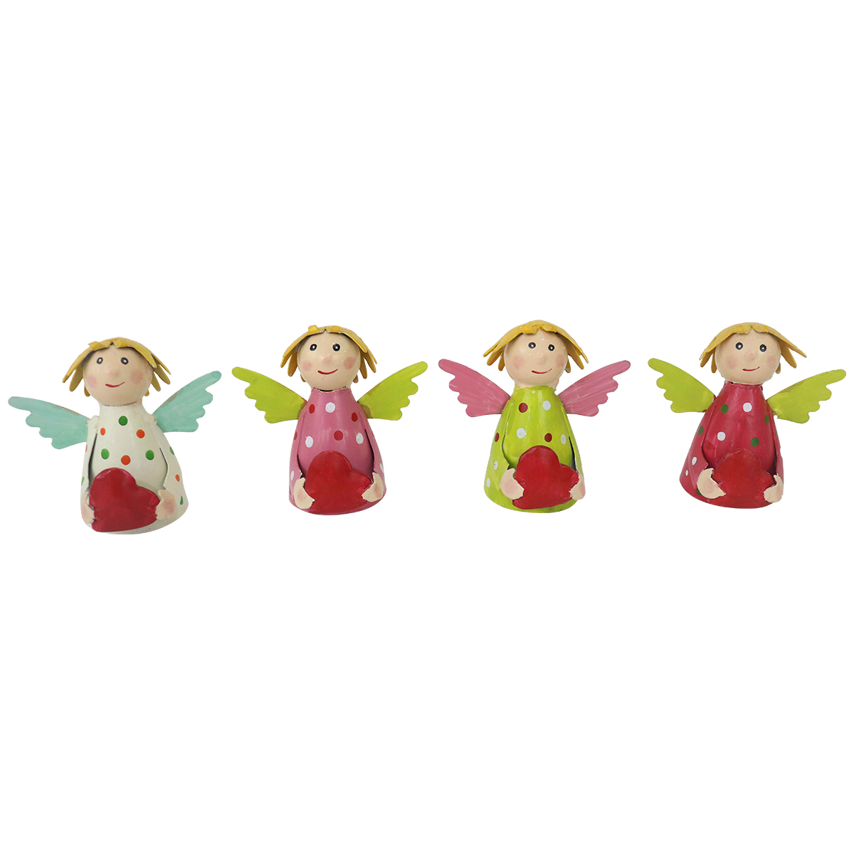 Mit seinem creme-farbenen Kleid im zarten Pünktchen-Design, dem kleinen Herz in den Händen und dem liebevollen Used-Look bringt er eine warme, persönliche Note in jede Dekoration.