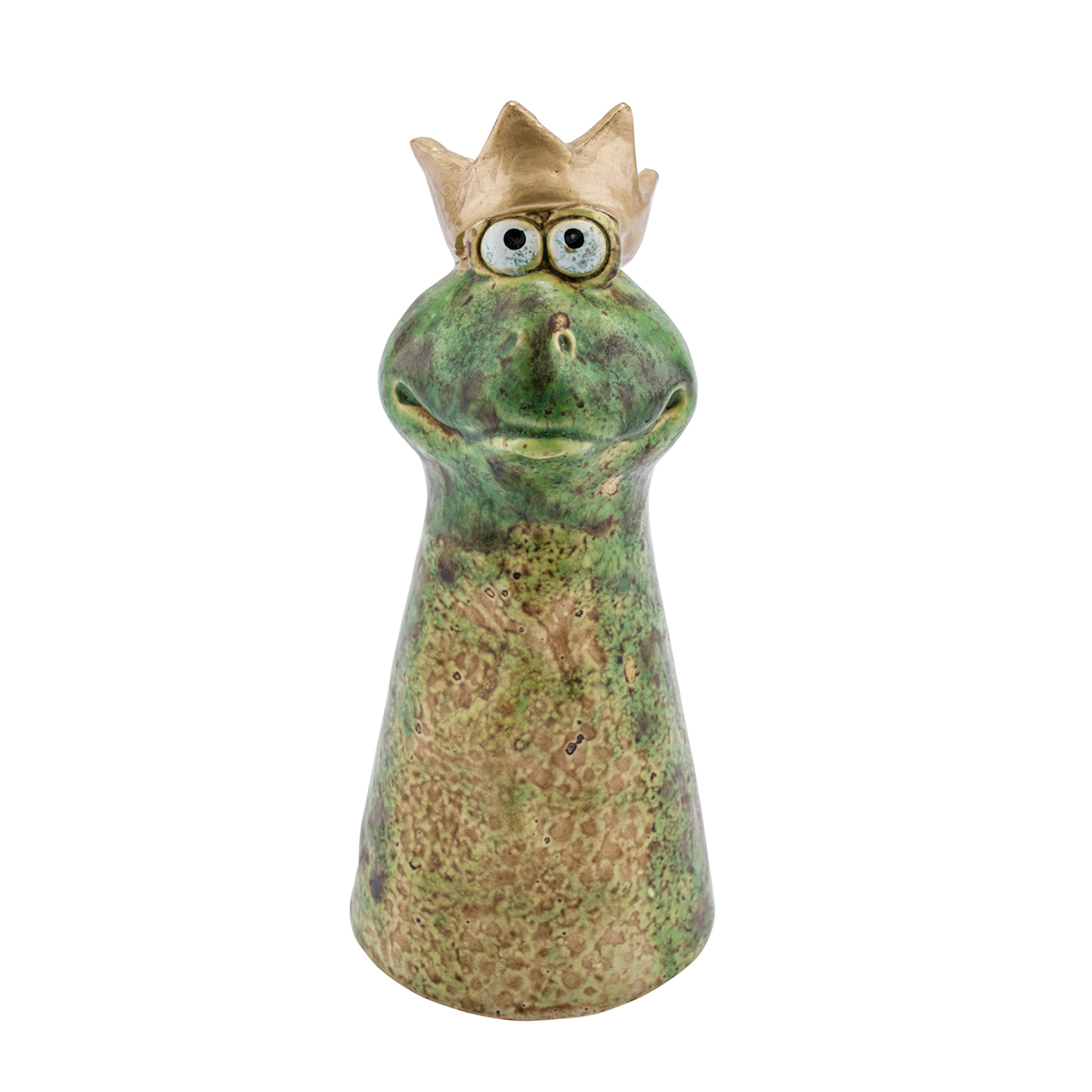 Zaunhocker Frosch braun-grün, Keramikfrosch mit Krone, 17cm