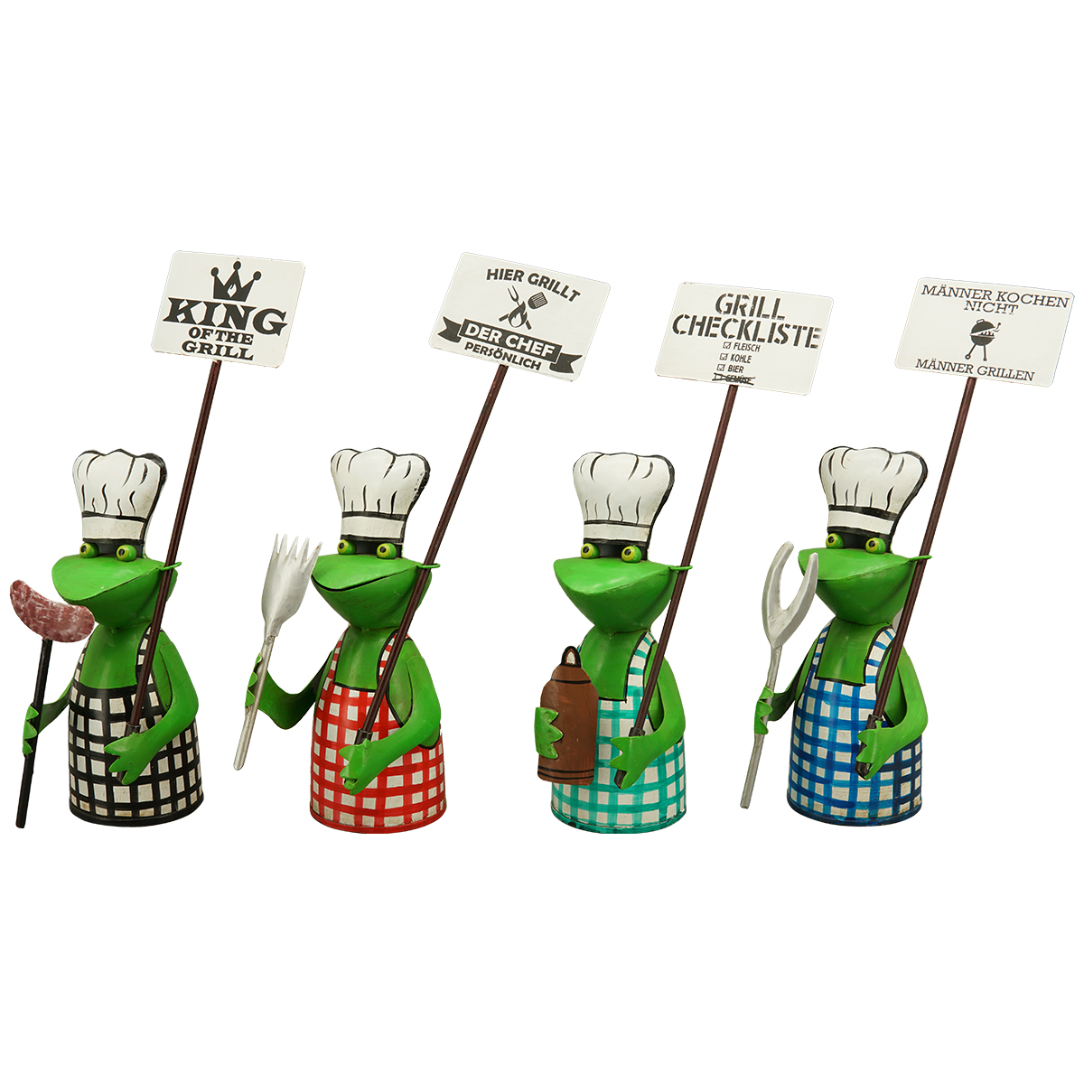 Zaunhocker Frosch Grill-BBQ, Metallfrosch mit Schild: Grillcheckliste, 22cm