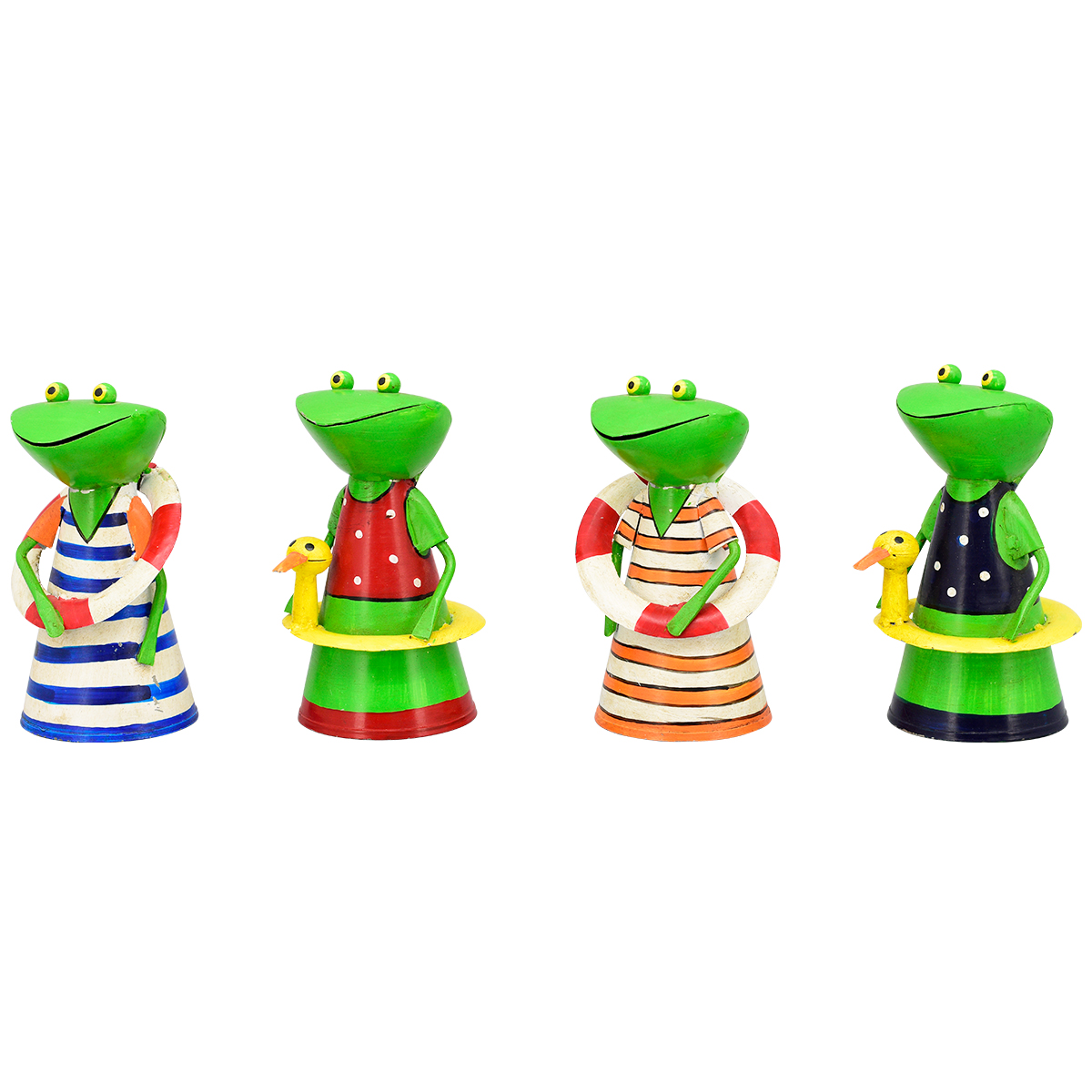 Produktinformationen "Zaunhocker Frosch mit Badekleid orange-creme, Metallfrosch mit Schwimmreifen, 20cm"