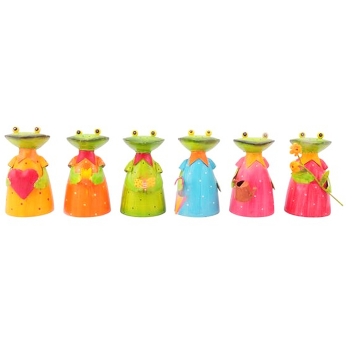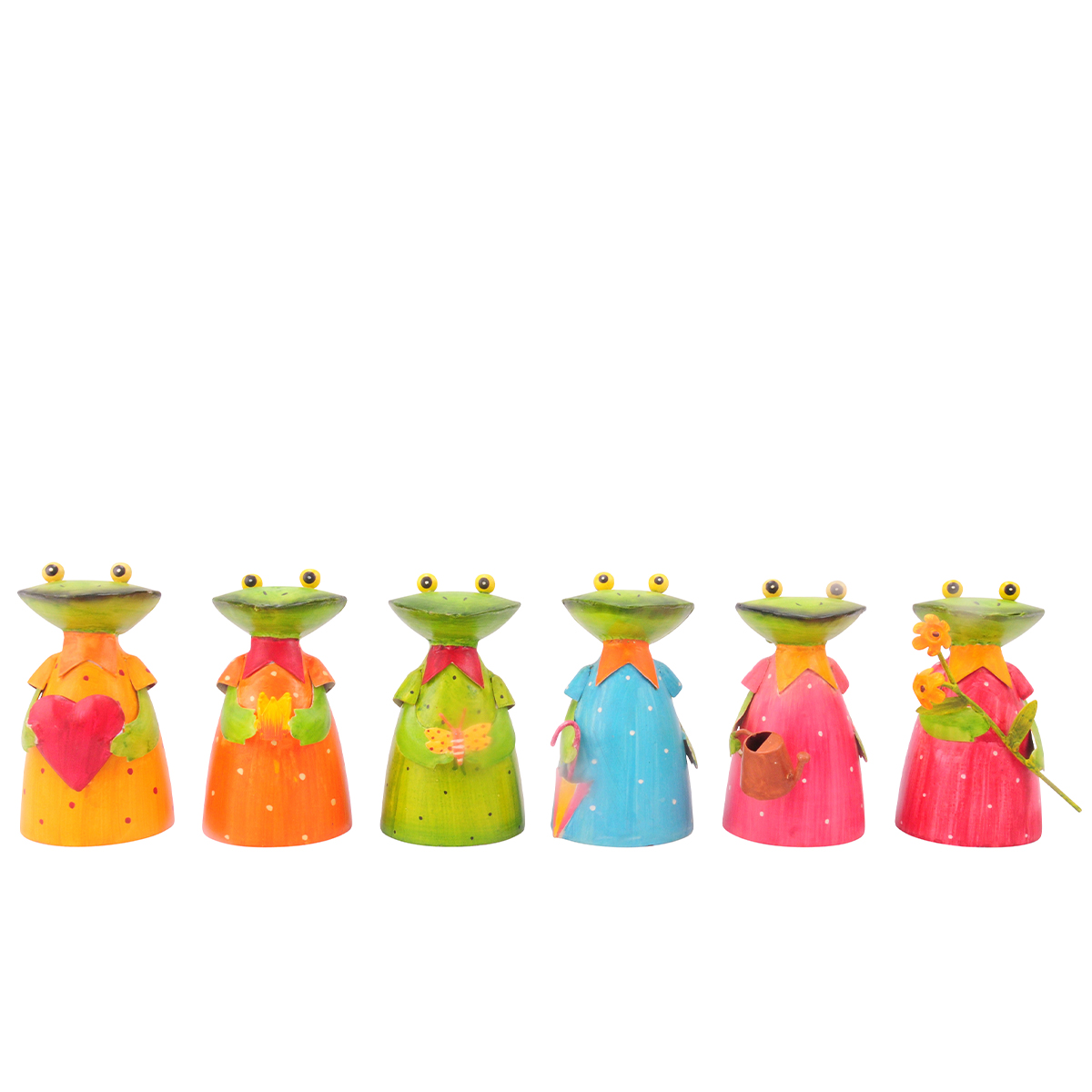 Zaunhocker Frosch mit Krone, Metallfrosch oranges Kleid und Krone, 18cm