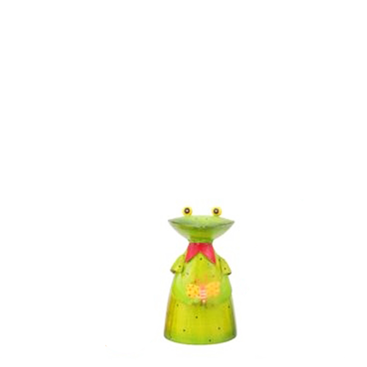 Zaunhocker Frosch mit Schmetterling, Metallfrosch grünes Kleid und Schmetterling, 18cm