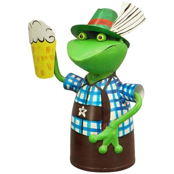 Dieser fröhliche, biertrinkende Trachtenfrosch bringt echtes Oktoberfestgefühl direkt in Garten, Balkon oder Eingangsbereich.