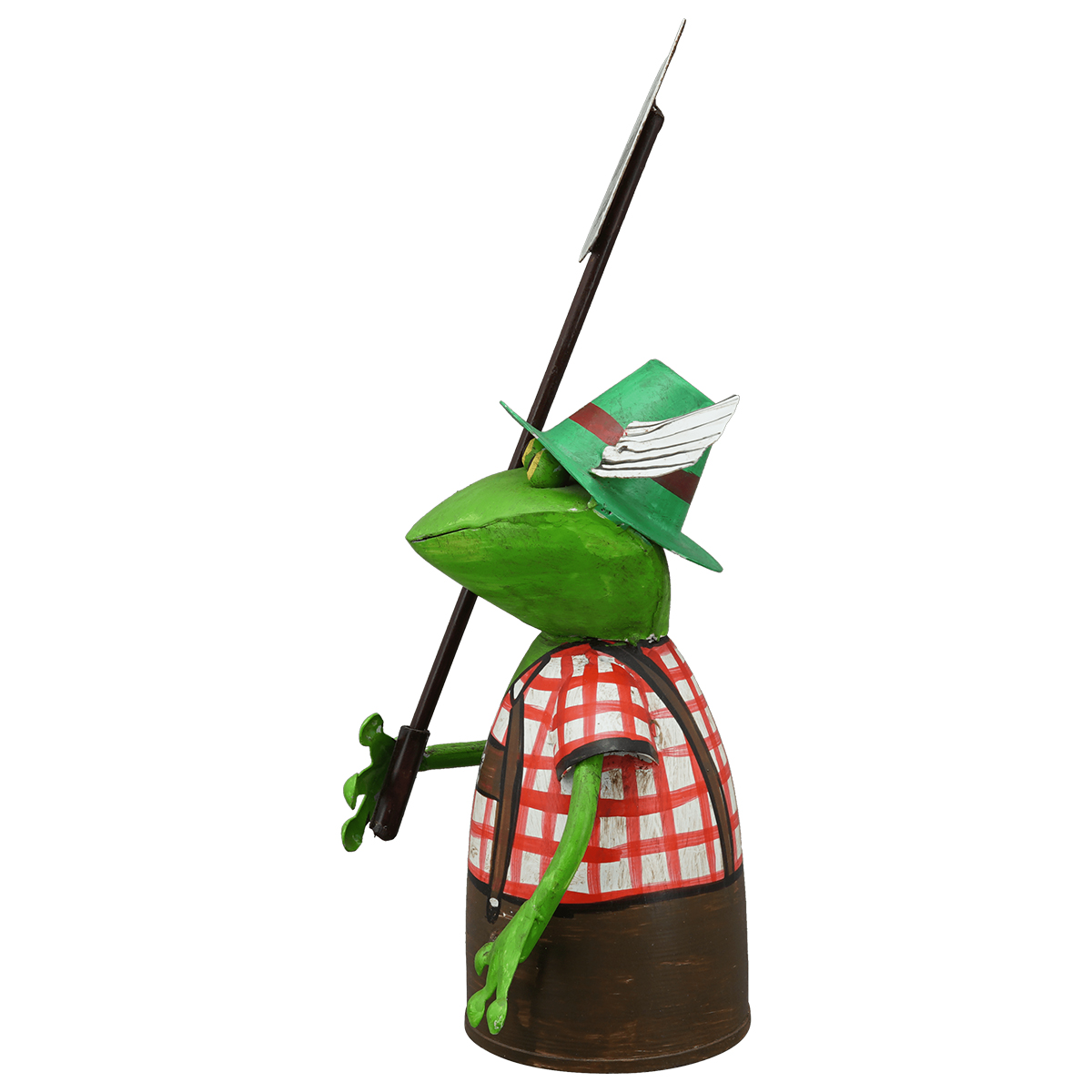 Produktinformationen "Zaunhocker Frosch Tracht, Metallfrosch in Lederhose mit Schild Biergarten, 30cm"