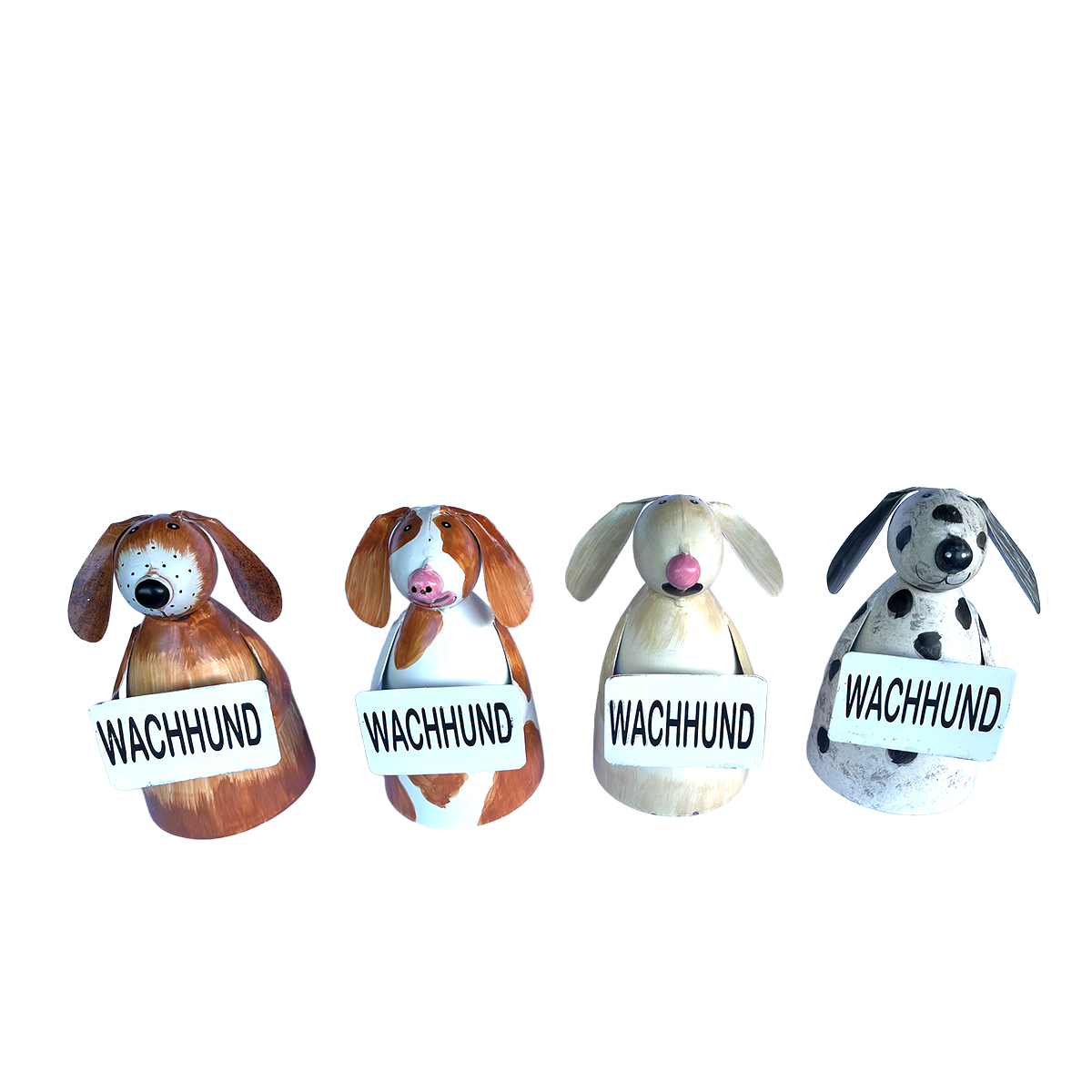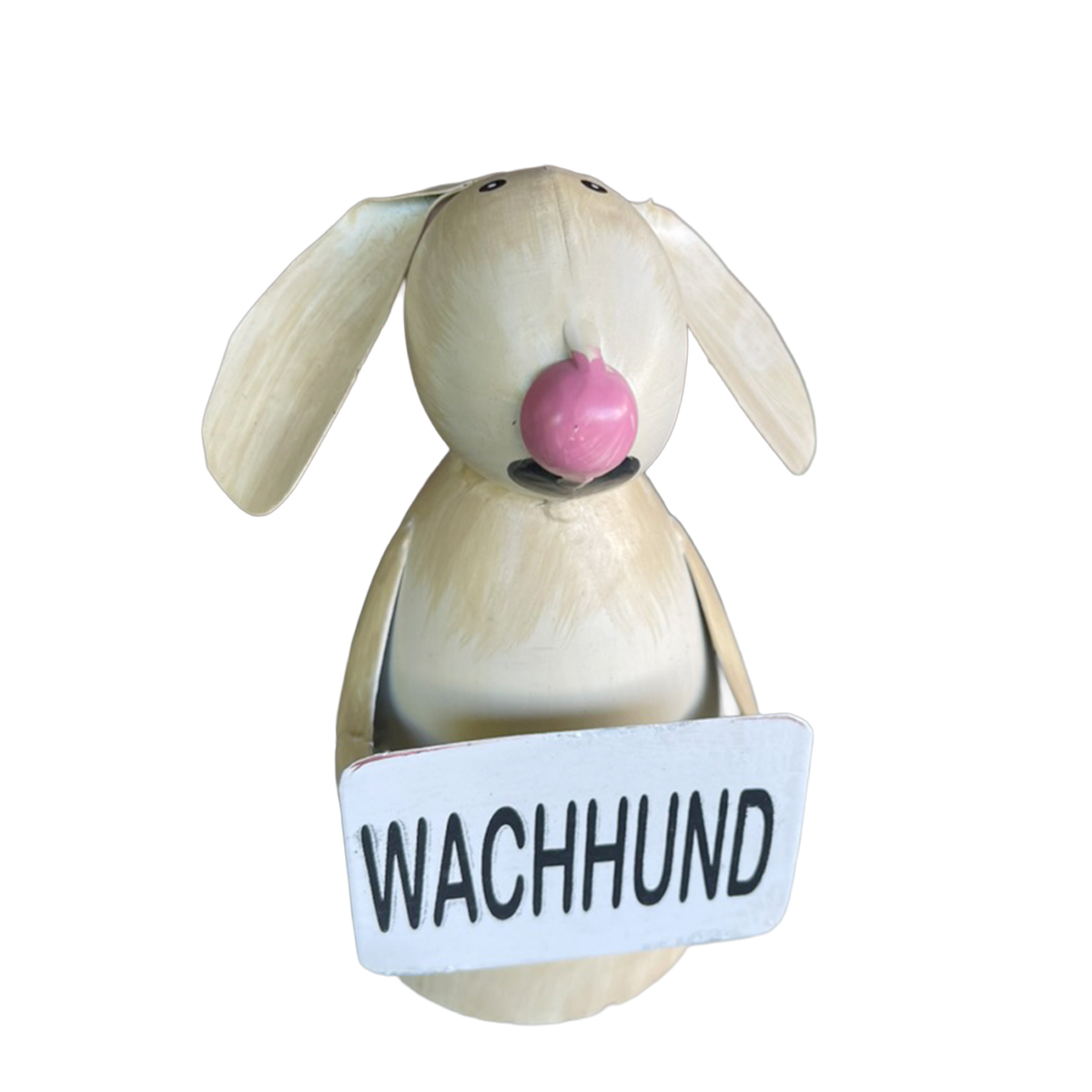 Zaunhocker Hund, Metallhund beige used look mit Schild: Wachhund, 19cm