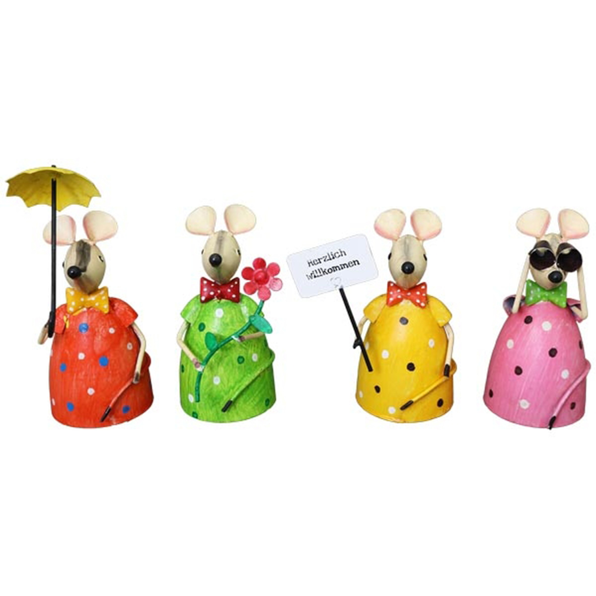 Liebevoll aus Metall gefertigt und mit vielen verspielten Details gestaltet, sitzt sie gemütlich auf Zäunen, Regalen oder Blumentöpfen und sorgt überall für ein Lächeln. Besonders süß wird es, wenn sie zusammen mit ihren bunten Mäuse-Schwestern einzieht – gemeinsam sind sie ein richtig fröhlicher Hingucker.
