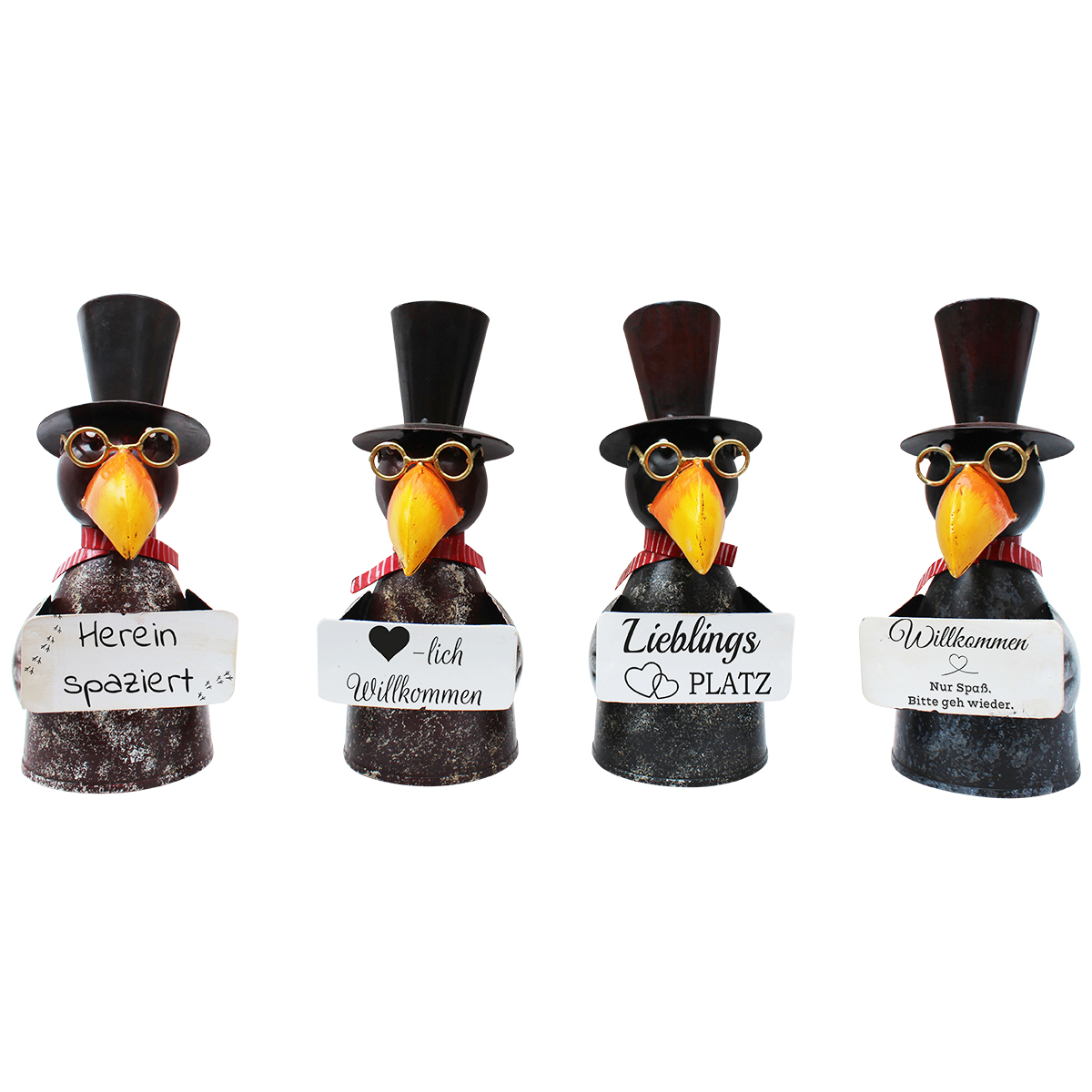 Zaunhocker Rabe Lieblingsplatz, Metallrabe mit Schild, Zylinder und Brille, 26cm