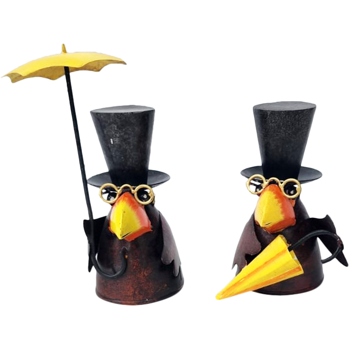 Zaunhocker Vogel, Rabe Rudi mit Zylinder und Regenschirm, 17cm, Metall